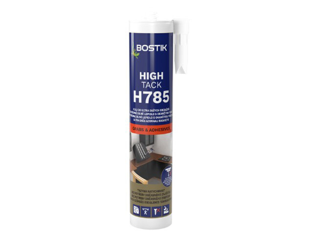 HIGH TACK H785 to trwale elastyczny, jednoskładnikowy klej hybrydowy o wysokiej gęstości i lepkości, do zastosowań ogólnobudowlanych i przemysłowych. Polecany do szczególnie wymagających zastosowań (do klejenia ciężkich elementów lub wysokich obciążeń). Zapewnia natychmiastowy chwyt początkowy bez podpierania. Do zastosowań wewnętrznych i zewnętrznych.