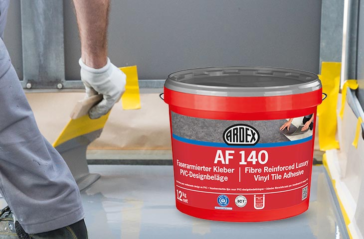 Wykładziny, które będą układane muszą być składowane w danym pomieszczeniu, w którym będą prowadzone prace by przyswoić temperaturę i wilgotność. Klej ARDEX AF 140 należy równomiernie rozprowadzić na przygotowane podłoże za pomocą odpowiedniej pacy zębatej. Przy układaniu wykładzin gumowych i wykładzin z PVC należy nanieść klej tylko taką warstwą i na takiej powierzchni by układając wykładzinę, układać ja w mokrym kleju Podczas wykonywania prac należy kontrolować systematycznie powierzchnie zwilżenia i kontaktu wykładziny z klejem i podłożem. Układanie wykładzin należy prowadzić tak, aby nie było pęcherzy – kieszeni powietrznych, załamań i pozawijanych krawędzi. Po około 40 minutach, wykładzina musi być wygładzona i dociążona walcem o wadze min. 50 kg.