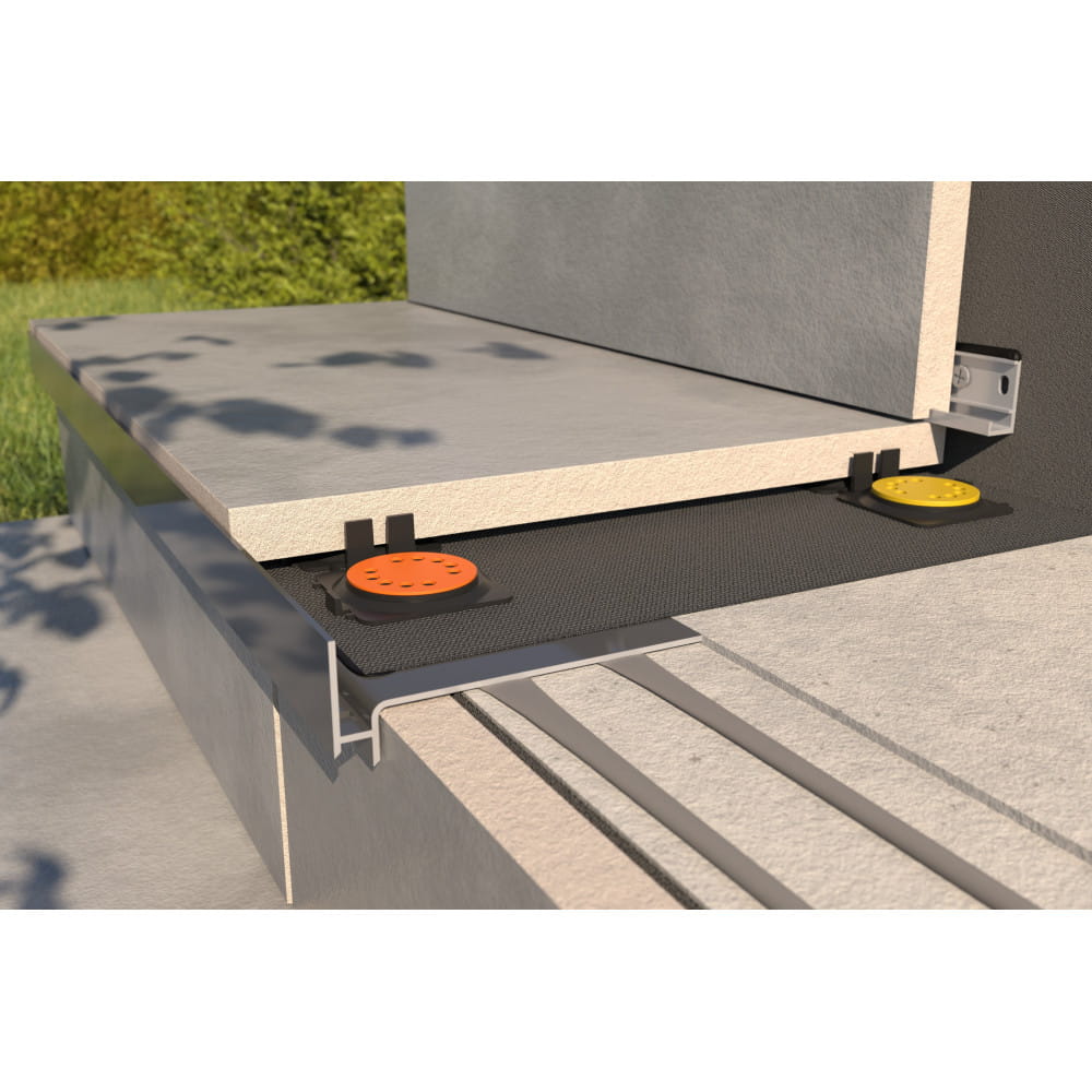 Zintegrowane dystanse o szerokości 2 mm dbają o równy rys fug i prawidłowy odpływ wody, a modułowa konstrukcja umożliwia podział wspornika na dwie lub cztery części. Dzięki temu bez trudu dopasujesz układ podparć do krawędzi, narożników i miejsc przycięć płyt, zachowując stabilność i estetykę całej nawierzchni.