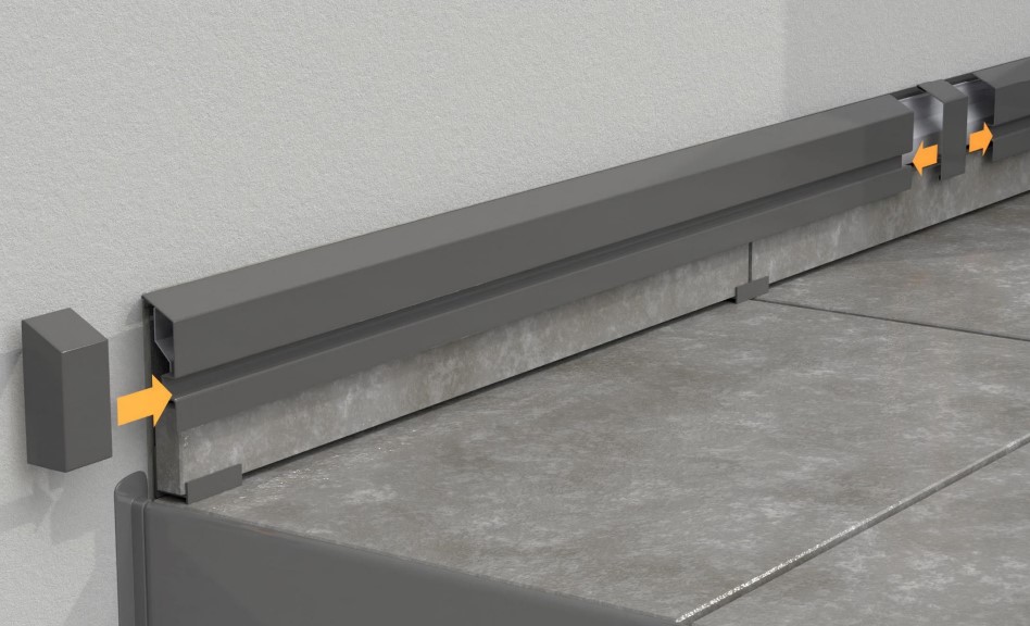 Unikalna budowa profili C1 i C2 umożliwia osadzenie płytek cokołowych bez konieczności ich klejenia do podłoża. Dzięki temu montaż jest szybszy i łatwiejszy, a płytki są stabilnie osadzone. Profile te zapewniają trwałe i estetyczne wykończenie, chroniąc jednocześnie konstrukcję przed wilgocią i uszkodzeniami.