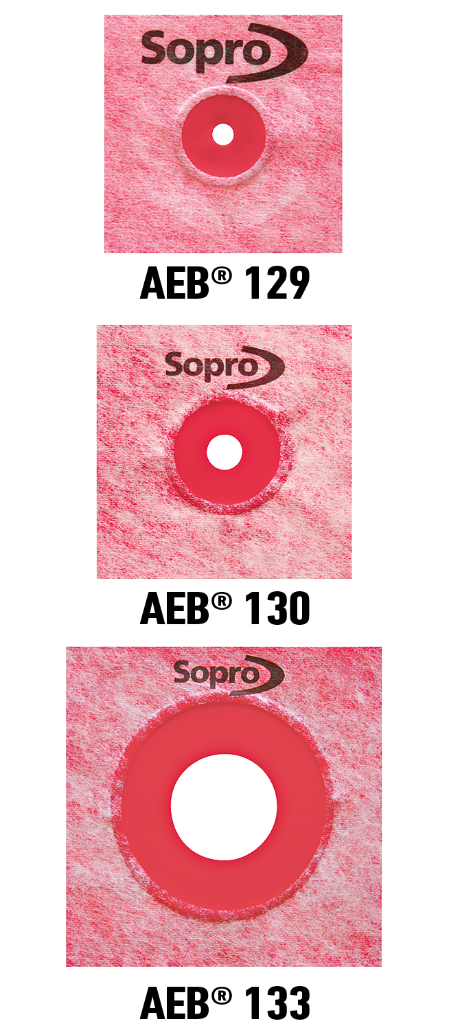 W przypadku zastosowania w systemie z matami uszczelniającymi uszczelkę przykleić na wcześniej zabudowanej macie, nakładając ją na rurę przepustową i wkleić całą powierzchnią w co najmniej 50 mm pas kleju montażowego Sopro Racofix® RMK 818 lub zaprawy uszczelniającej Sopro TDS 823.