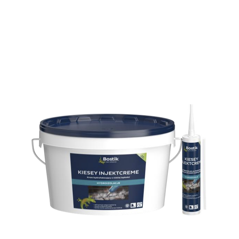 Kiesey Injektcreme jest kremem hydrofobizującym na bazie silanu i siloksanu. Dzięki niskiej lepkości koncentrat może wnikać w najmniejsze pory i kapilary materiału budowlanego, a dzięki kremowej konsystencji utrzymuje się w otworze. Po zetknięciu z wilgocią w materiale budowlanym tworzy warstwę uszczelniającą, rozpoczynając jednocześnie proces osuszania ścian.
