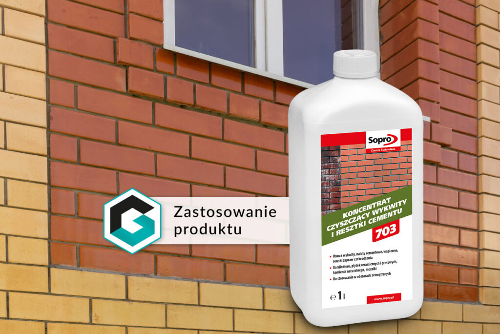 Czyszczoną powierzchnię należy zwilżyć wodą. Preparat Sopro ZA 703 rozcieńczyć wodą w proporcji 1:10 i przy pomocy szczotki nanieść na obrabianą powierzchnię, następnie ją wyszorować. Przy bardzo mocnych zabrudzeniach proces czyszczenia powtórzyć. Po zakończeniu pracy powierzchnię dokładnie spłukać wodą.