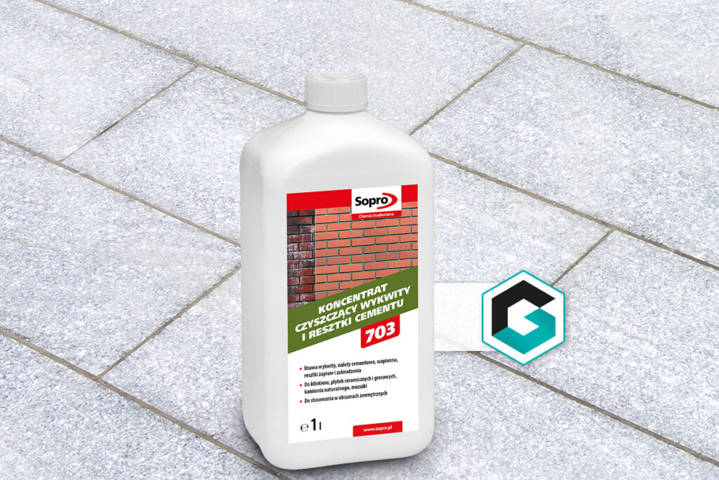 Do usuwania nalotów cementowych z nowo ułożonych okładzin oraz do czyszczenia zabrudzonych, użytkowanych powierzchni. Koncentrat Sopro ZA 703 może być stosowany na wszystkich odpornych na działanie kwasów powierzchniach, jak płytki i płyty ceramiczne, mozaika, okładziny i cegły klinkierowe, płyty Cotto, płyty z kamieni naturalnych i syntetycznych itp.