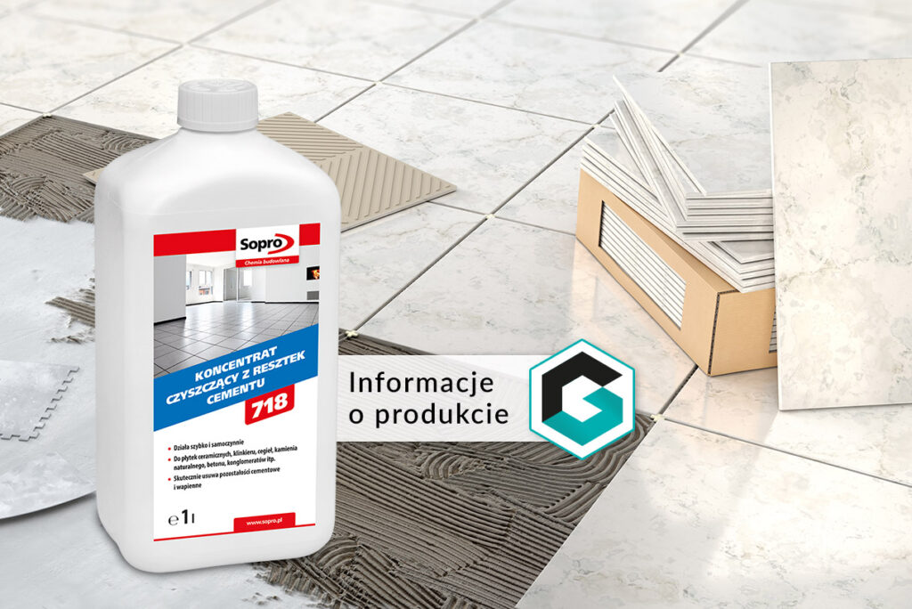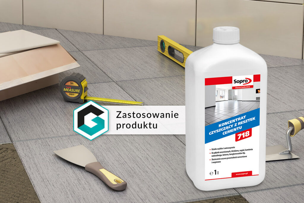 Do usuwania nieorganicznych zanieczyszczeń, jak pozostałości nalotów cementowych, osadów wapiennych, rdzy, zatłuszczeń, resztek mydła, powszechnie występujących (nieorganicznych) zabrudzeń i osadów oraz różnego rodzaju wykwitów ze wszystkich, niewrażliwych na działanie kwasów okładzin, jak płytki ceramiczne, płyty klinkierowe, ceglane i gliniane, płyty Cotto, beton elewacyjny, a także z kamieni naturalnych (granitów lub nieobrobionych wapieni), wielu tworzyw sztucznych oraz chromu, stali szlachetnej itp. Koncentrat Sopro ZE 718 stosuje się przede wszystkim do czyszczenia typowych zabrudzeń budowlanych w pomieszczeniach (preparat do stosowania w pomieszczeniach i na zewnątrz).