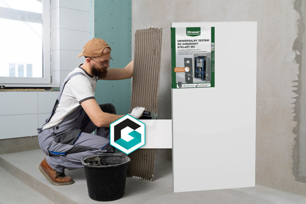 UNIWERSALNY ZESTAW DO ZABUDOWY STELAŻY WC jest idealnym elementem nośnym przeznaczonym do zabudowy większości stelaży podtynkowych. Zestaw tworzą płyty budowlane wykonane z XPS pokrytego obustronnie powłoką mineralna z wtopioną siatką z włókna szklanego, które w połączeniu z sobą gwarantują 100% wodoodporność oraz stanowią doskonałe podłoże dla okładzin ceramicznych bez konieczności gruntowania. Płyta czołowa do zabudowy stelaży WC  posiada gotowe otwory  do montażu zasilania i odpływu wody oraz do miski ustępowej. Dodatkowo na wysokości oparcia miski ustępowej ma wzmocnienia, minimalizując ryzyko wystąpienia pęknięć okładzin ceramicznych