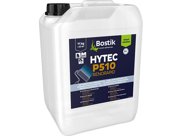 BOSTIK P510 RENORAPID to grunt o przeznaczeniu do podłoży chłonnych i niechłonnych. Znajduje zastosowanie jako grunt wzmacniający beton, grunt na anhydryt, jastrychy cementowe, ksylolitowe i magnezjowe, asfalt lany, płyty kamienne, okładziny drewniane. Grunt poliuretanowy stosuje się również do wzmocnienia nierównych obrzeży jastrychów oraz jako warstwa sczepna do podłoży z pozostałościami starych, utwardzonych klejów. Ponadto grunt P510 RENORAPID do powierzchni chłonnych i niechłonnych blokuje wilgoć kapilarną oraz wilgoć resztkową do maksymalnej wartości 4,5% metodą CM (z wyjątkiem jastrychów anhydrytowych i magnezjowych)..